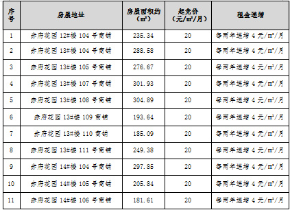 三、本次竞拍只报起竞价,房屋每间租金起竞价为:
