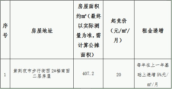 紫荆夜市1处二层房屋租赁竞拍公告