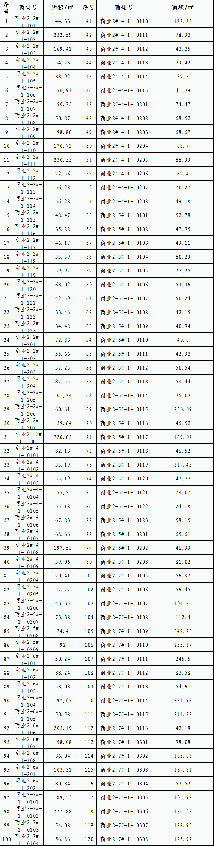 3、儒乐湖绿地小镇商业街商铺位于南昌市金山大道以东、滨湖南路路以南,金云东路以北,绿地大面积住宅唯一风情商业街、商务写字楼公寓和医疗健康设施。靠北侧沿湖 2 层局部三层建筑均为商业,南侧为办公建筑、公寓建筑和医疗建筑。共计120间商铺,商铺具体信息如下: