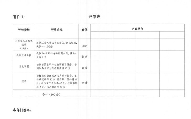 1、比选项目名称:电梯检测项目