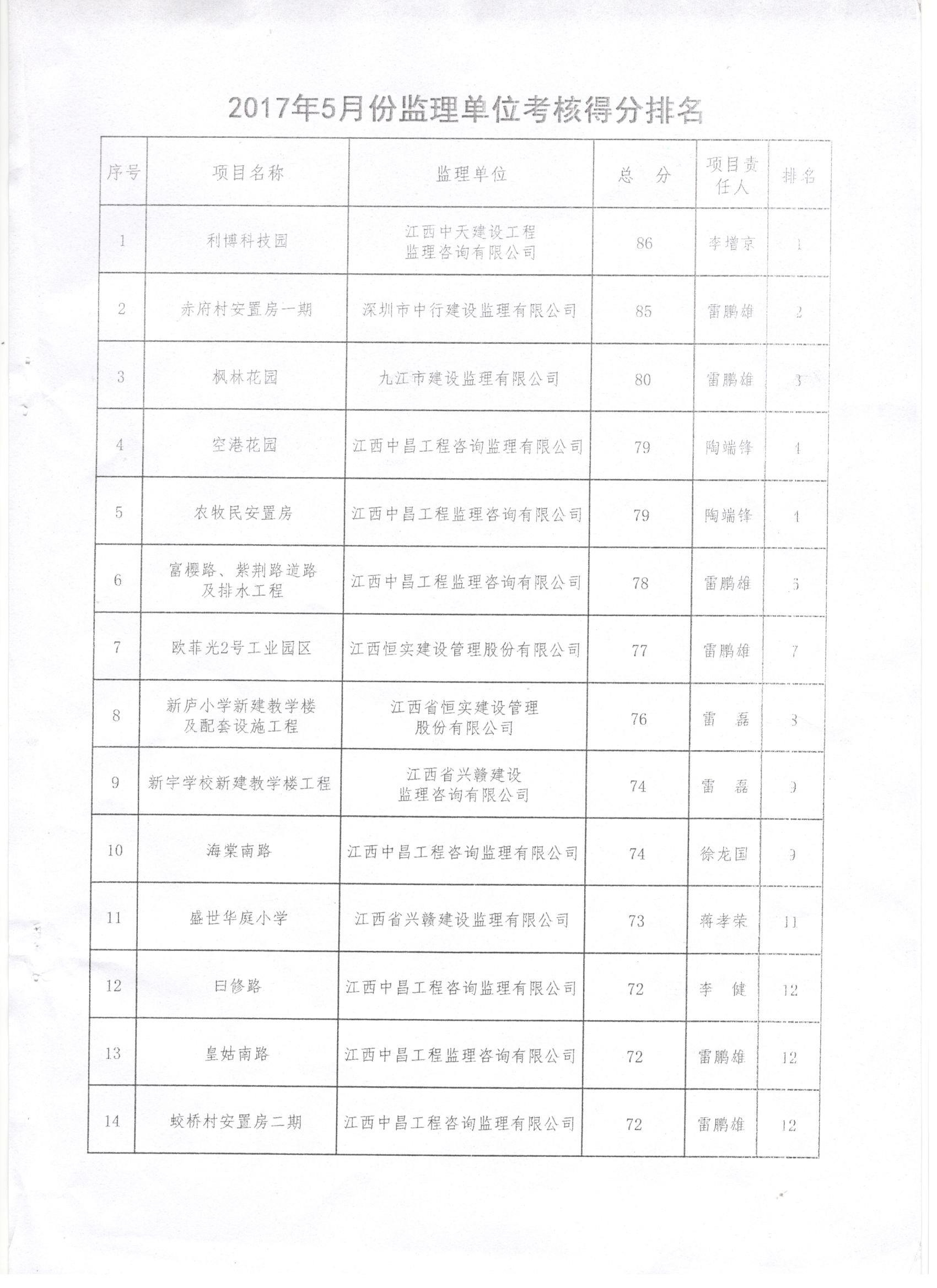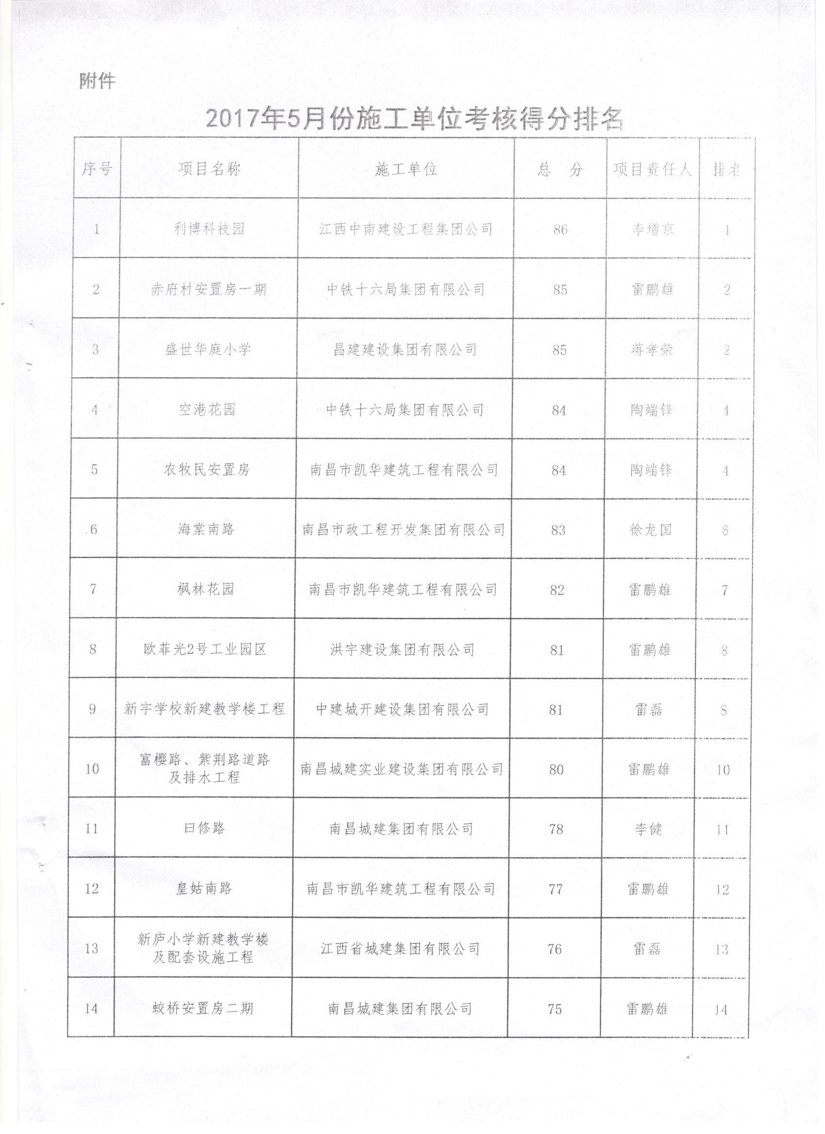 金开星空体育在线官网首页_星空体育(中国)2017年5月施工、监理考核公布啦!