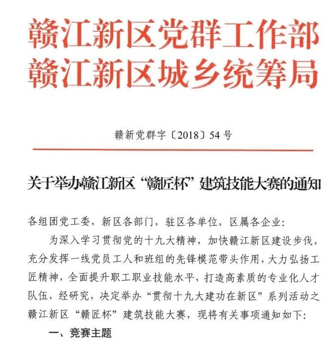 此次“赣匠杯”建筑技能大赛受到赣江新区管委会及各组团的高度重视,其举办初衷是为了加强各组团间的凝聚力,提升建筑施工企业技术水平,弘扬追求卓越、精益求精的工匠精神,从而进一步形成建好、建快赣江新区的整体合力。