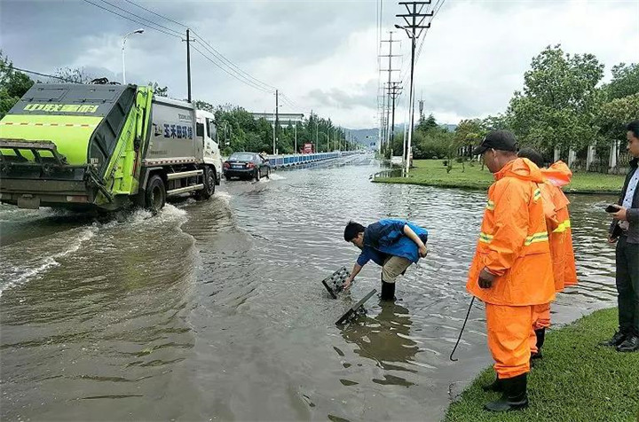 道路排查中,应急人员发现桂苑路与菊圃路交叉口,松鹤路桥涵等地积水较严重,影响到市民正常通行,管护公司立即在积水点竖立警示牌,安排人员进行交通疏导并对雨水排放设施进行疏通,以加快积水排放,消除安全隐患。针对部分积水严重处,管护公司立即调用抽水机和大型水泵不间断抽出积水导入城市雨水管网。