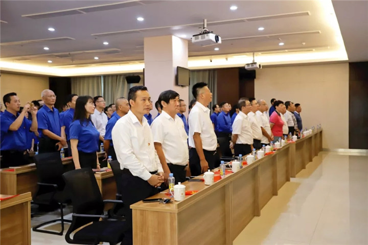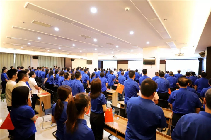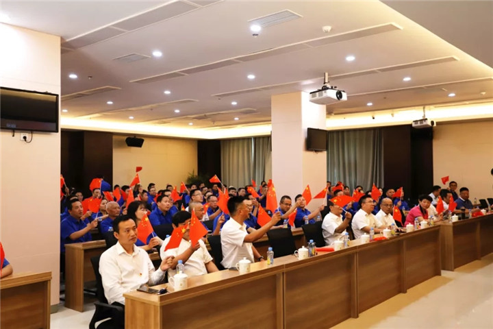 随着谢荣华按下启动键,伴随着激昂雄壮的国歌声,鲜艳的五星红旗冉冉升起、迎风飘扬,金开星空体育在线官网首页_星空体育(中国)在场的每一个人满怀崇敬之情向国旗行注目礼,表达对祖国母亲的崇高敬意和最美好的祝福。