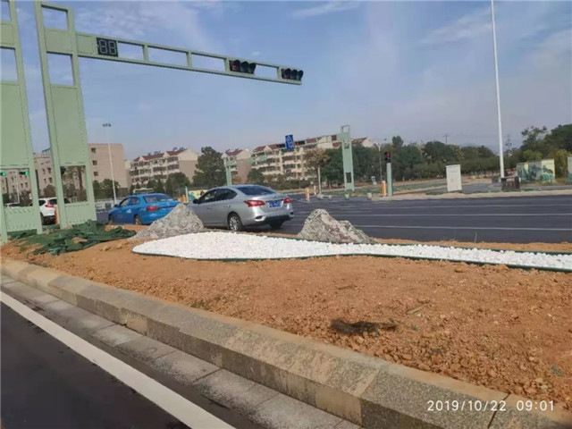 5、英雄大道南理学院段路缘石修砌,英雄一路至英雄二路雨水篦子修砌,裸土覆盖,洒水车洒水,确保工地无扬尘。