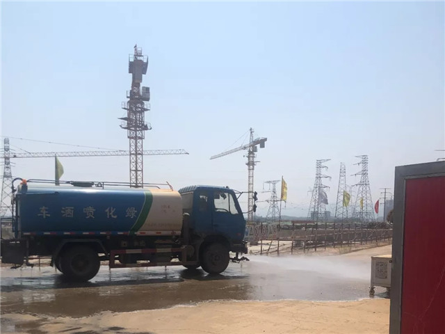 启雾炮机降尘,清洗现场道路,时刻大门口整洁