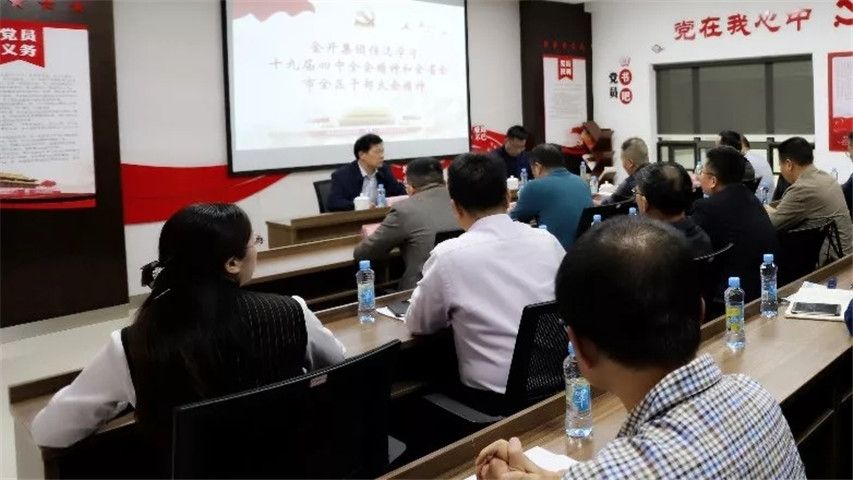 11月5日,金开星空体育在线官网首页_星空体育(中国)在保利综合大楼203会议室召开了学习传达十九届四中全会精神和全省全市全区干部大会精神会议。星空体育在线官网首页_星空体育(中国)党委书记、董事长谢荣华出席会议并讲话,星空体育在线官网首页_星空体育(中国)党委委员、副总经理袁扣华主持会议并传达十九届四中全会精神及全省全市全区干部大会精神,星空体育在线官网首页_星空体育(中国)领导班子、各部门负责人及各公司领导班子参加会议。