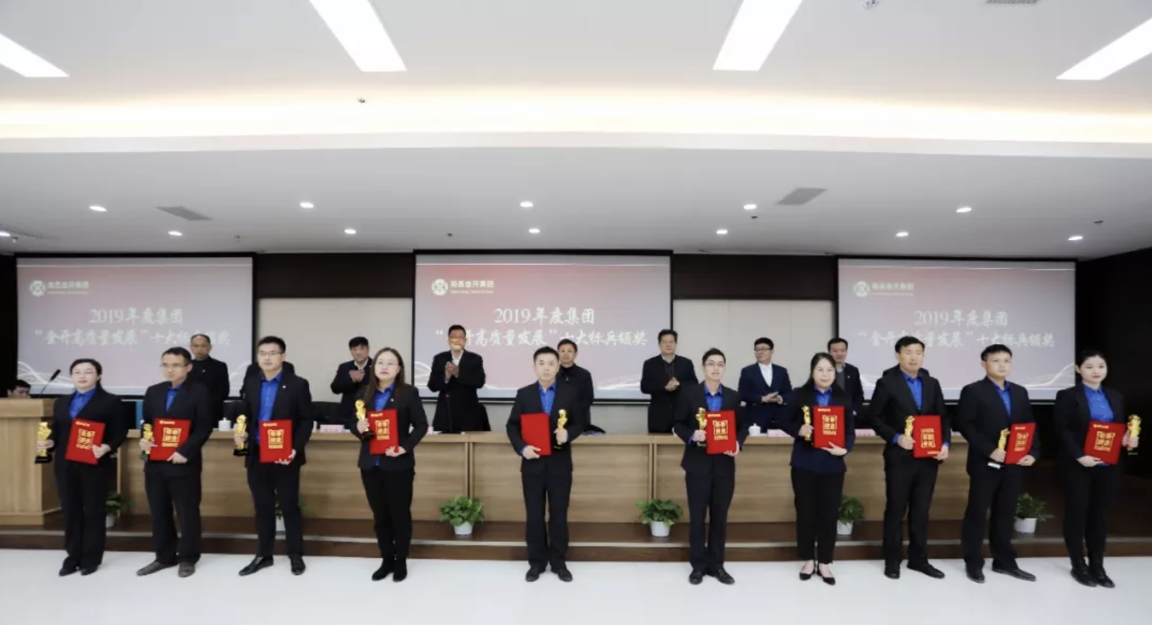 程建兵及星空体育在线官网首页_星空体育(中国)领导班子为2019年度星空体育在线官网首页_星空体育(中国)“金开高质量发展”十大标兵颁奖并合影留念。随后,2名优秀员工代表发表了获奖感言。
