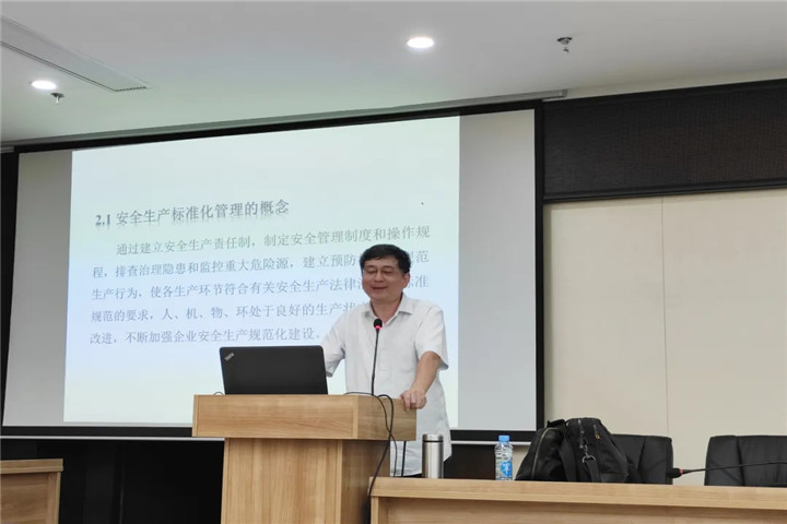 此次培训学习会特邀江西建工星空体育在线官网首页_星空体育(中国)高级工程师蓝九元担任讲师,会上,蓝九元以安全生产真实案例为切入点,结合自身多年项目安全管理经验,紧密围绕《安全生产标准化基本要求》讲义课程进行了深入解析。