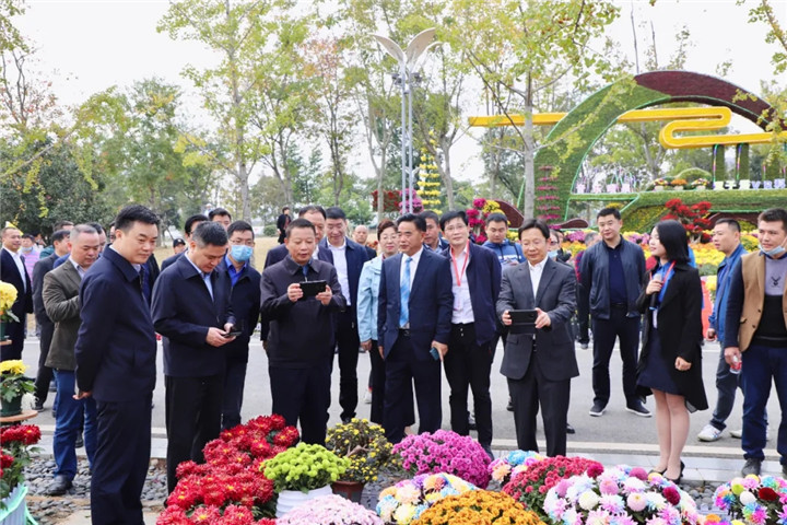 人共菊花醉金秋,宜居南昌幸福城。11月6日,南昌市第三十二届菊花展在美丽的梅湖景区花博园盛大开幕。副市长宋铀,市秘书长杨保根等相关领导出席并参加游园、赏菊活动。经开区党工委委员、管委会副主任王励,区城环局局长丁亚克等相关人员陪同。
