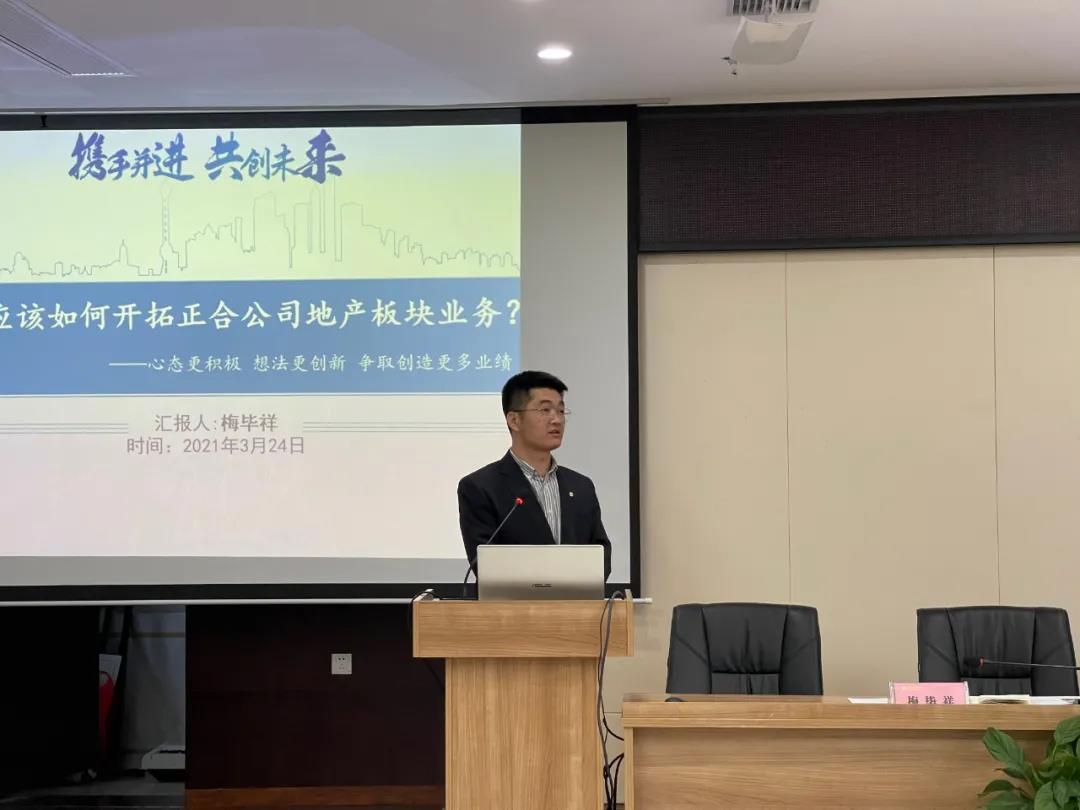 3月24日下午,金开星空体育在线官网首页_星空体育(中国)首场房地产开发业务交流培训会在星空体育在线官网首页_星空体育(中国)108会议室召开。正合公司副总经理梅毕祥受邀作了主题为《我们应该如何开拓正合公司地产板块业务?——心态更积极,想法更创新,争取创造更多业绩》的专题授课。星空体育在线官网首页_星空体育(中国)党委书记、董事长谢荣华,星空体育在线官网首页_星空体育(中国)党委委员、副总经理李茶根,星空体育在线官网首页_星空体育(中国)党委委员、纪委书记方义发出席,星空体育在线官网首页_星空体育(中国)相关部门负责人及正合公司全体人员参加。