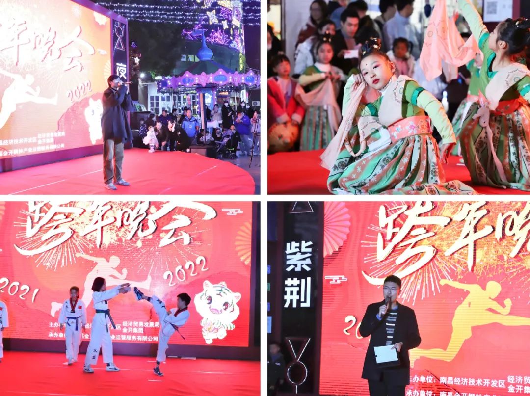 为进一步擦亮紫荆夜市品牌,凝聚人心汇聚力量,展望新年新气象,2021年12月31日晚,由南昌经济技术开发区经济贸易发展局和金开星空体育在线官网首页_星空体育(中国)主办,枫林产业公司承办的跨年活动在紫荆夜市隆重举行。本次活动邀请了园区企业南昌瑞奥聚成生物技术有限公司、紫荆夜市商家汝艺舞蹈艺术中心及义盟跆拳道参与表演节目。