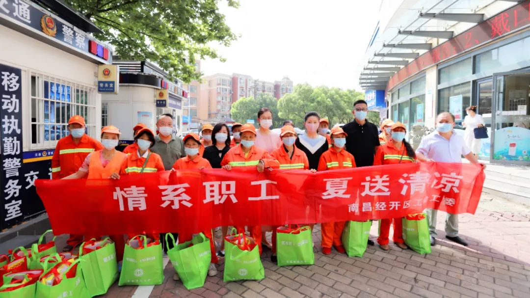 7月21日,南昌市总工会副主席张小芳一行来到经开区慰问一线环卫工人,经开区工会主席雷惠珍、专职副主席刘燕,金开星空体育在线官网首页_星空体育(中国)党委副书记、副总经理、工会主席袁扣华,管护公司班子成员及星空体育在线官网首页_星空体育(中国)工会相关人员陪同。