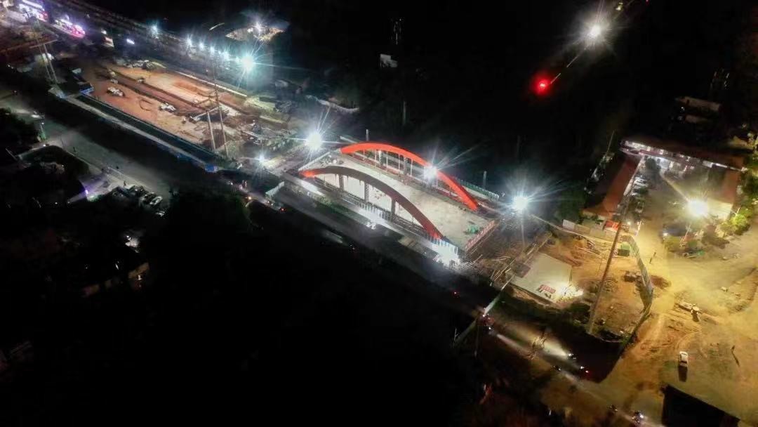 全国首次!6400吨跨车站系杆拱混凝土梁顶推施工完成!