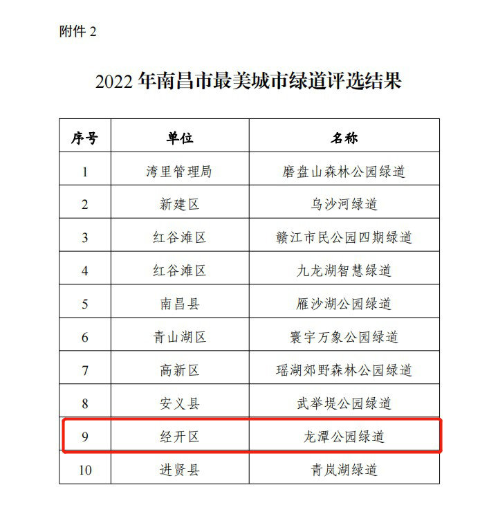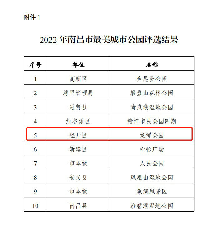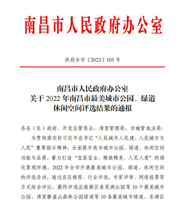 2月28日,南昌市人民政府办公室发布《关于2022年南昌市最美城市公园、绿道休闲空间评选结果的通报》,其中由南昌金开星空体育在线官网首页_星空体育(中国)建设的龙潭公园(南昌经开区龙潭水渠景观提升改造工程)荣获“最美公园”“最美绿道”荣誉称号!