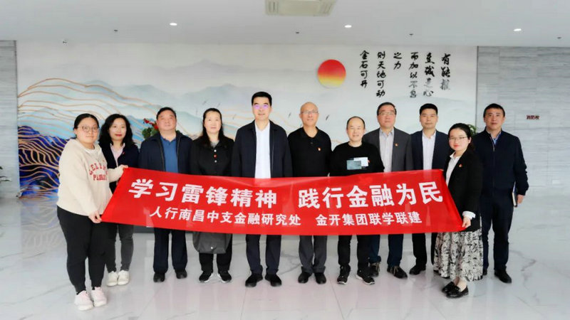 3月16日下午,人民银行南昌中心支行与金开星空体育在线官网首页_星空体育(中国)开展“学习雷锋精神 践行金融为民”联学联建活动。人民银行南昌中心支行金融研究处处长曾省晖,副处长陈强、彭岚,区党工委委员、管委会副主任贺敏,区财政金融局副局长胡军平,金开星空体育在线官网首页_星空体育(中国)党委副书记、总经理李茶根,星空体育在线官网首页_星空体育(中国)相关部门负责人等共同参加,并召开交流座谈会。