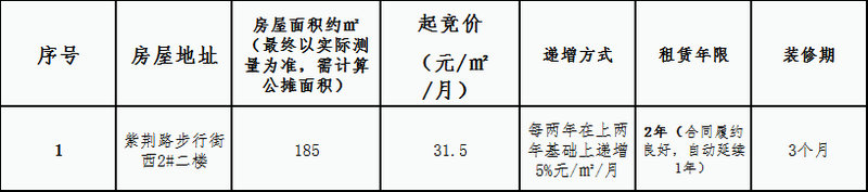 紫荆路步行街西2#二楼房屋租赁 竞拍公告