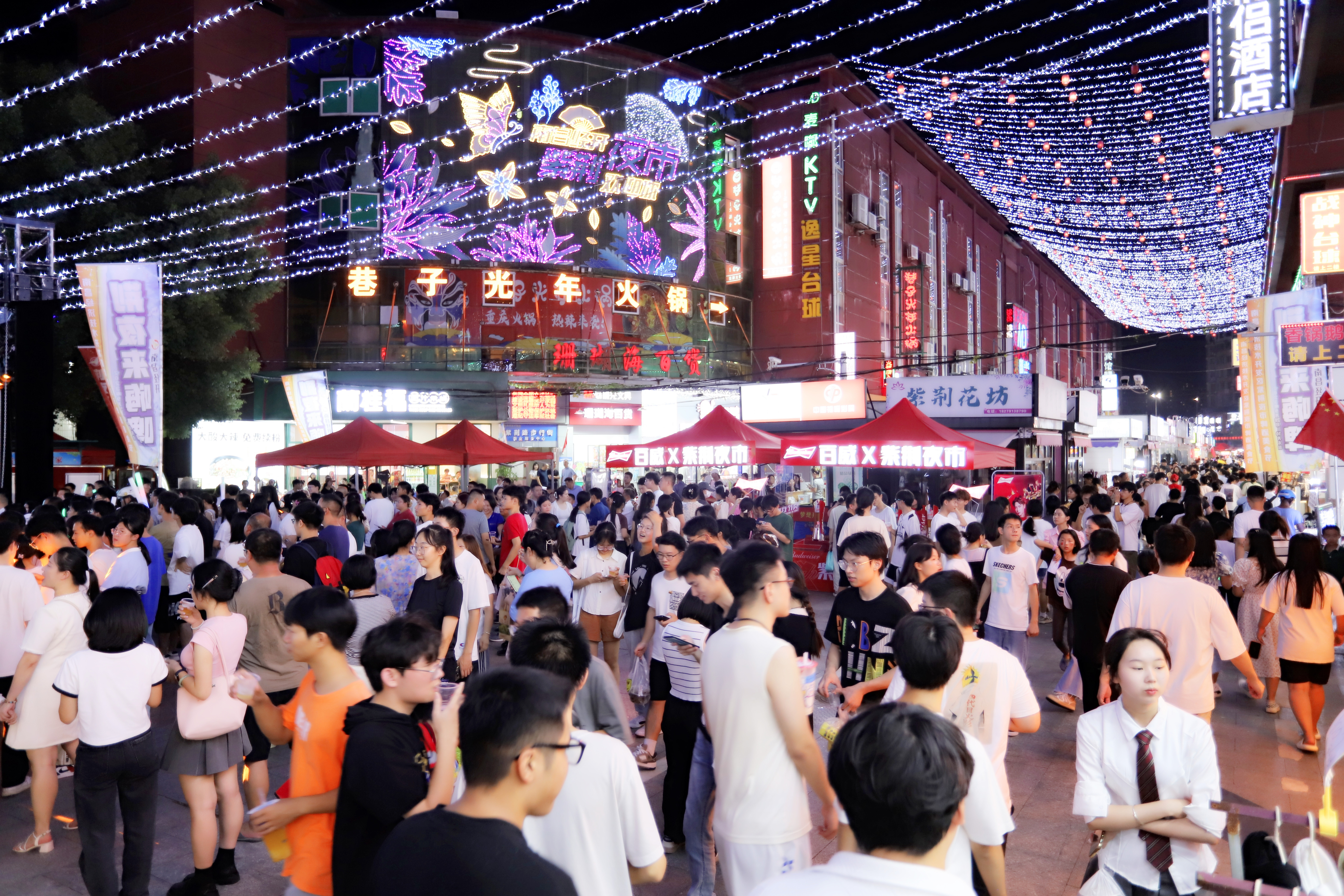 由“星河巷尾亮”至“万盏灯火闹”,在南昌经开区,以紫荆夜市为标杆的夜间经济已跃升为都市商业的璀璨明珠。南昌经开区致力于开拓消费新领域,在彰显现代都市的时尚魅力与蓬勃朝气中,不懈点燃“繁华景”,点燃市民消费热情,激发经开区夜经济潜能,为增强消费预期添基石、增活力。