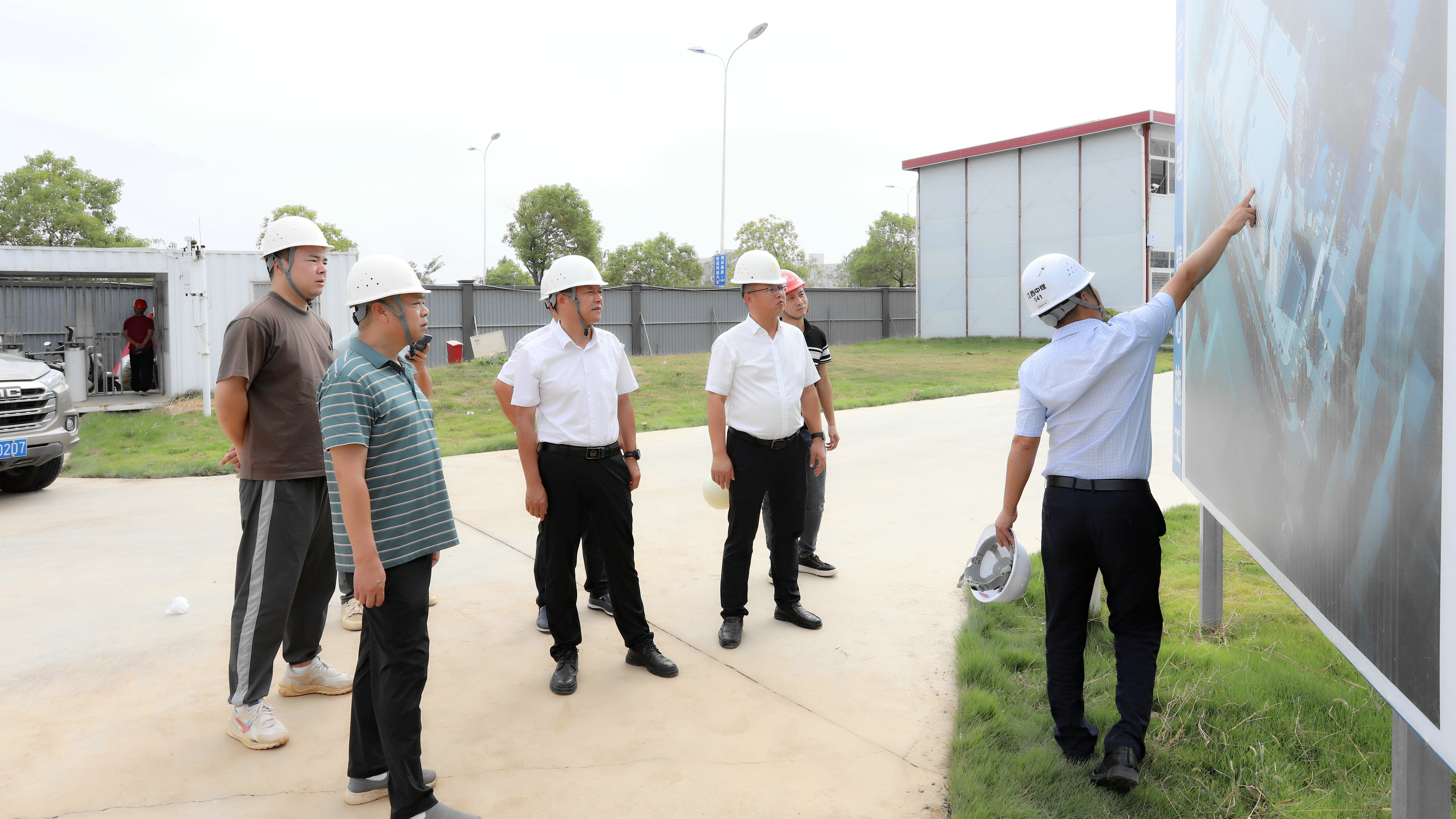 罗贤锦一行先后来到山丹路学校、机电产业园、低碳产业园、鸿儒路、天源三路、滕王阁药业研发生产基地等项目现场,通过实地查看、现场问询等方式,详细了解各项目施工节点、进展、质量及安全生产情况,并提出具体要求。
