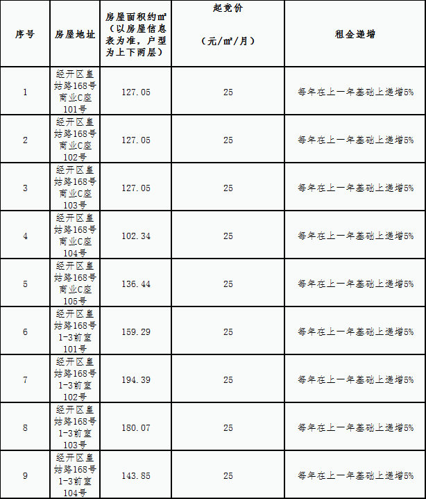 二、本次竞拍采用有底价、有声竞拍的形式。竞拍开始后,首次叫价为增幅后报价,不低于25.5元/平方米/月,每次报价增幅最低不低于0.5元/平方米/月的整倍数,如出现竞拍人仅举牌不叫价情况,即默认为在上一轮叫价基础上增加0.5元/平方米/月,否则应价无效。当最高价(超过底价)未有人追加竞价时,主拍人对该价重复三次报价,第三次重复报价无人应价,由主拍人宣布成交。本次竞拍取达到底价的最高报价人作为中标人,中标人若放弃中标人权力,不按排名顺延中标人,我司将做废标处理。