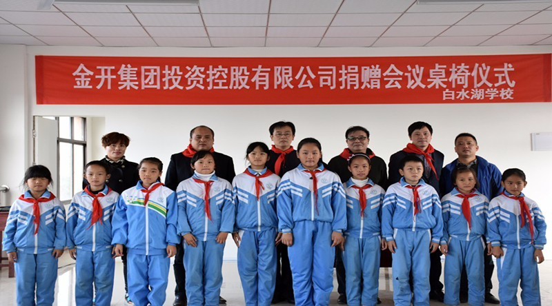 11月2日,金开星空体育在线官网首页_星空体育(中国)下属控股公司捐赠会议桌椅仪式在白水湖学校隆重举行,控股公司向区白水湖学校捐赠价值3.2万元的桌椅150余套,用于学校阶梯教室教学设施改造。