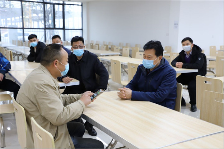 3月8日上午,星空体育在线官网首页_星空体育(中国)党委书记、董事长谢荣华来到中小企业园食堂改造的临时招聘场所调研防控工作进展,慰问企业返岗员工,检查复工复产情况。为园区企业送上口罩、水果等防疫生活物资,并召开现场座谈会,与企业负责人对企业疫情防控工作和企业复工复产工作开展的有关情况进行深入交流,研究部署当前园区疫情防控及企业复工需解决的困难。星空体育在线官网首页_星空体育(中国)党委副书记、副总经理袁扣华以及金匠置业公司负责人周晔、星空体育在线官网首页_星空体育(中国)综合部负责人卢金玲等陪同。