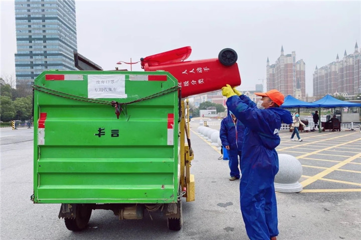 同时,在辖区内严控道路、商超周边、地铁口等人流较大路段设立了废弃口罩专用垃圾桶,并安排专人专车进行清理收集,到目前为止,累计在蛟桥镇辖区内单独设置废弃口罩专用垃圾桶40个、单独运输785辆次、单独处置废弃口罩等特殊有害垃圾78吨。