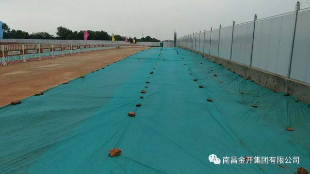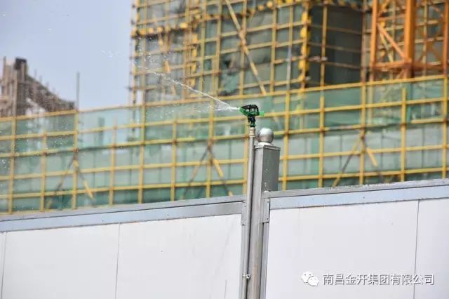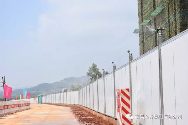 三、首创除尘喷雾系统。为解决施工场地内扬尘污染大的问题,施工单位引入先进的安全文明施工措施,在经开区首创全场地除尘喷雾系统。具体做法是沿着围挡上部安装水管,每隔几米安装水雾喷头,定时启动开工,使得整个工地扬尘得到控制。