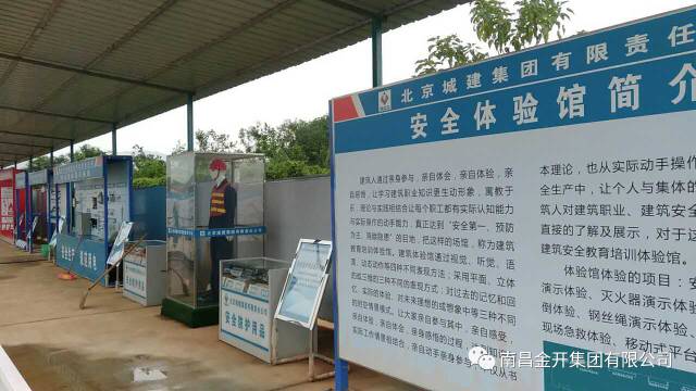 二、设置安全教育体验馆。为更好地提升全体工作人员的安全生产意识,项目部创造性地建立了具有显著安全文化特色的安全教育体验馆。安全教育体验馆集演示性、体验性、操作性与互动性于一体,内部划分为安全急救体验、洞口坠落体验、安全帽撞击体验、移动式倾倒平台体验、安全讲评台五大区域,以前瞻性体验式学习与数字化技术相结合的创意思路实现五项功能区域一体化。一改以往纸上谈兵的安全教育模式,通过身临其境的安全教育体验,让安全意识和安全知识真正扎根作业人员心中,达到“一次体验、长期受用”的学习效果。